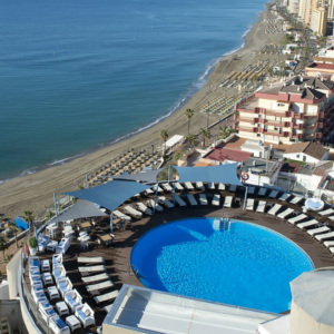 Hotel El Puerto es un hotel frente al paseo marítimo y la playa de Fuengirola, a solo unos metros del mar en la Costa del Sol. Nos ofrece habitaciones modernas, muchas con vistas al mar. En la azotea hay una piscina panorámica y un Sky Bar ideal para relajarse con vistas al Mediterráneo. El hotel dispone de restaurante buffet y bares, además de servicios como recepción 24h y está cerca de tiendas, restaurantes y transporte público, perfecto para explorar Fuengirola.