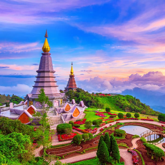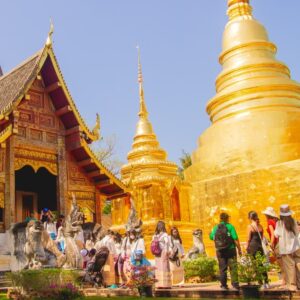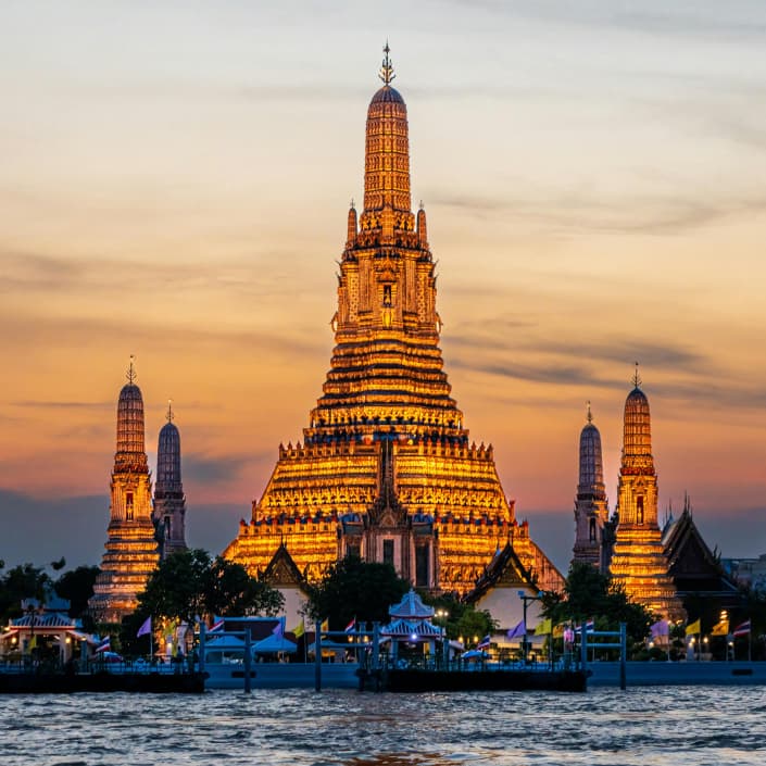 Un viaje donde la espiritualidad se mezcla con la aventura, el exotismo y muchas sonrisas compartidas. La ruta comienza en Bangkok, una ciudad que no se anda con medias tintas: templos deslumbrantes como el Gran Palacio, el Buda Esmeralda o Wat Arun brillan entre rascacielos y mercados, mientras navegamos por antiguos canales que revelan la cara más auténtica y caótica de la capital.